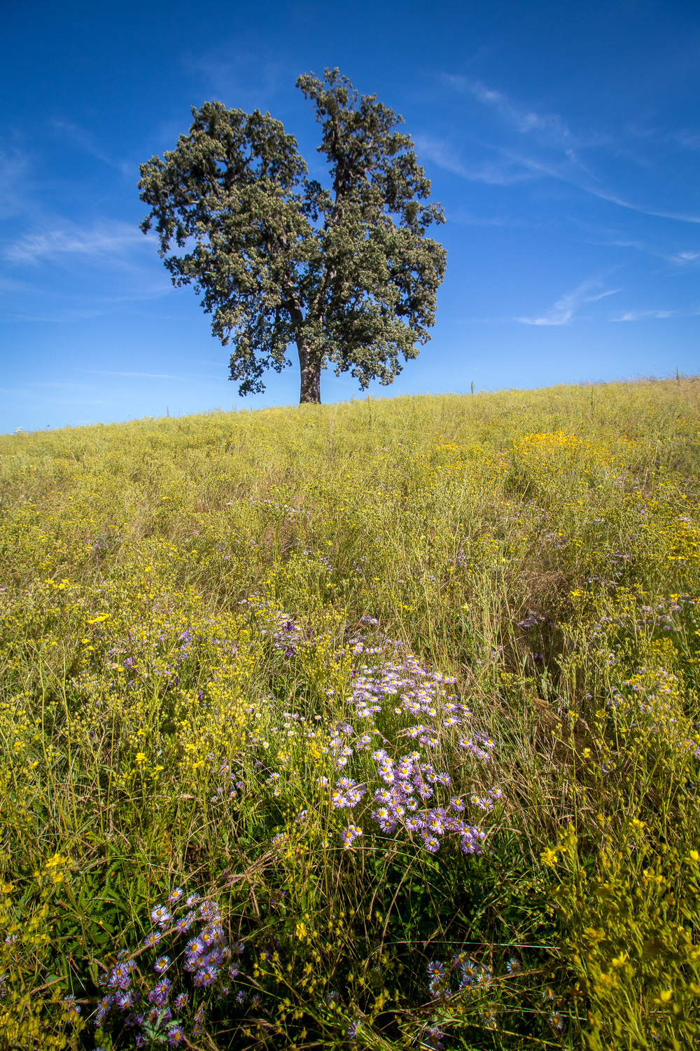 Willamette daisy (purple), among an admixture of flowers with which it shares insect visitors.