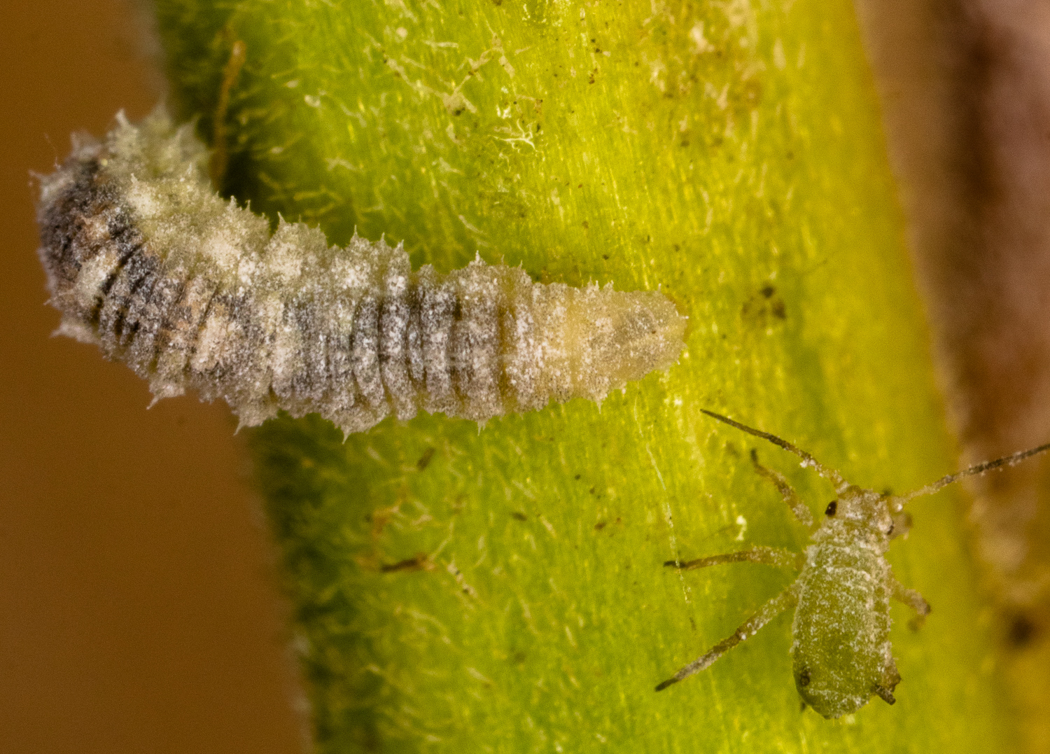 Lupine aphids and predators (syrphid larva and adult) are common.