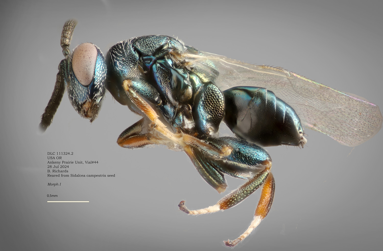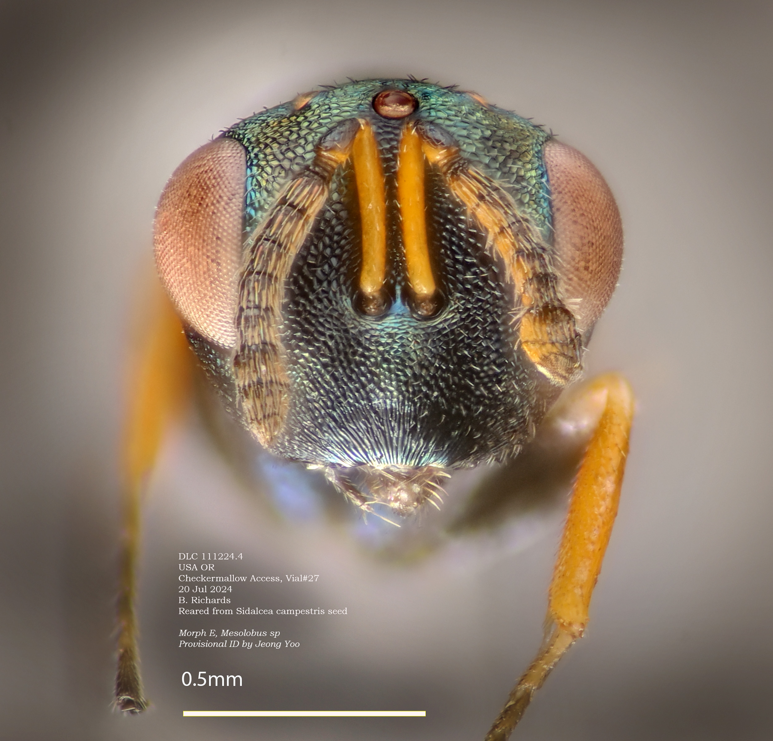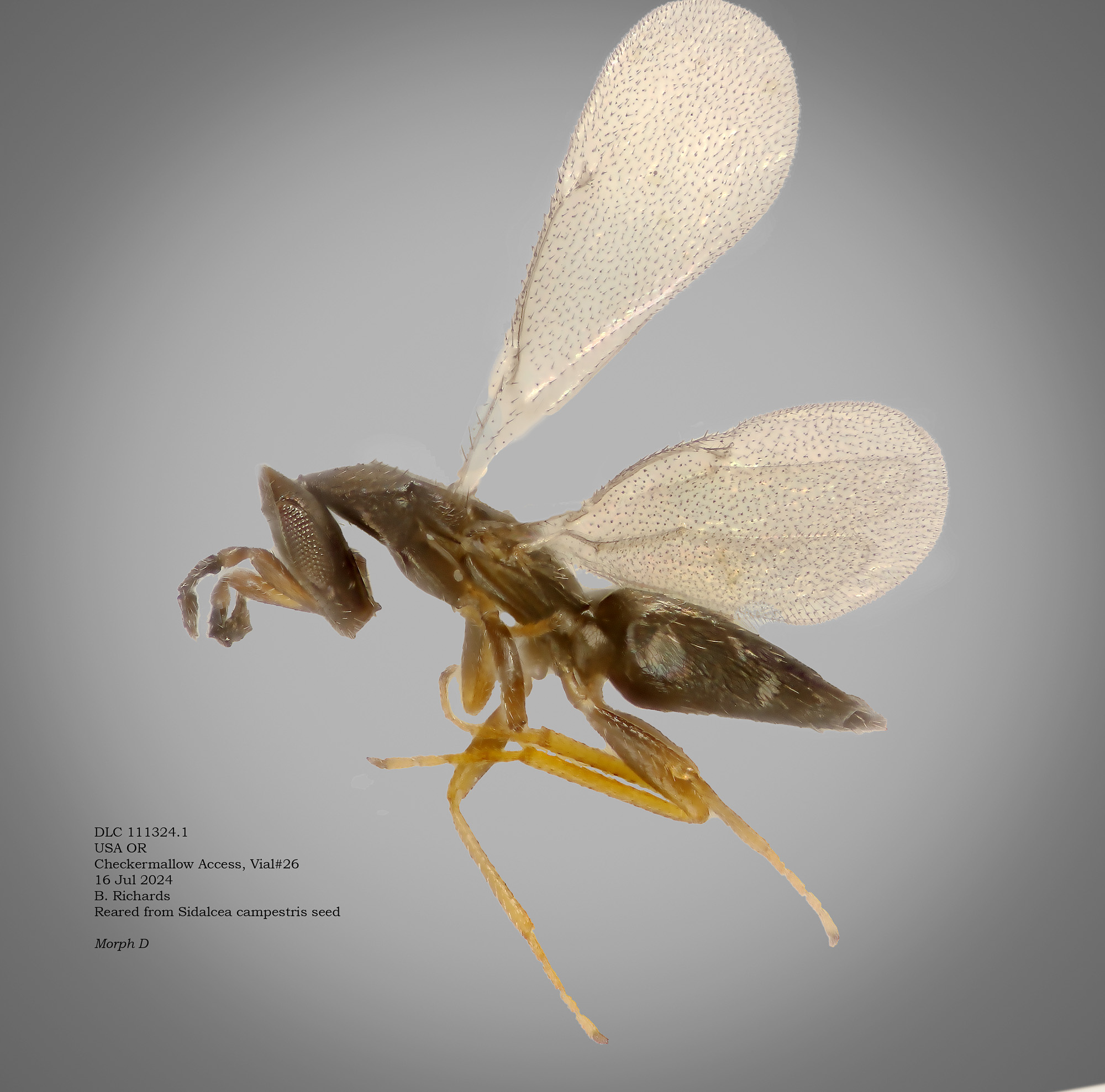 Weevil parasitoids We have made very limited collections from S. oregana var. calva , which turned up a couple wasp species. The potential list is probably much longer; in 2024 Brooklyn Richards (Oregon State Univ) collected extensively from Sidalcea campestris. We found at least 6 likely parasitoids (as well as a couple of interesting wasps that were probably by-catch).