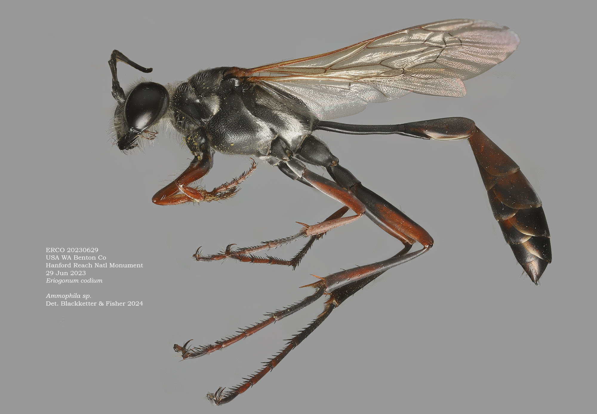 From Quamash EcoResearch: From Quamash EcoResearch: Umtanum Desert wild buckwheat (Eriogonum codium) is a beautiful, long-lived woody shrub that exists only along the Columbia River bluffs in the Hanford Reach of Washington state. In 2022, we surveyed and identified pollinators of this rare plant, finding flower visitation by a surprising diversity of wasps. We also documented seed predation and translocation by ants. Exploring the basic ecology of desert buckwheat is a fundamental step toward conservation and recovery.