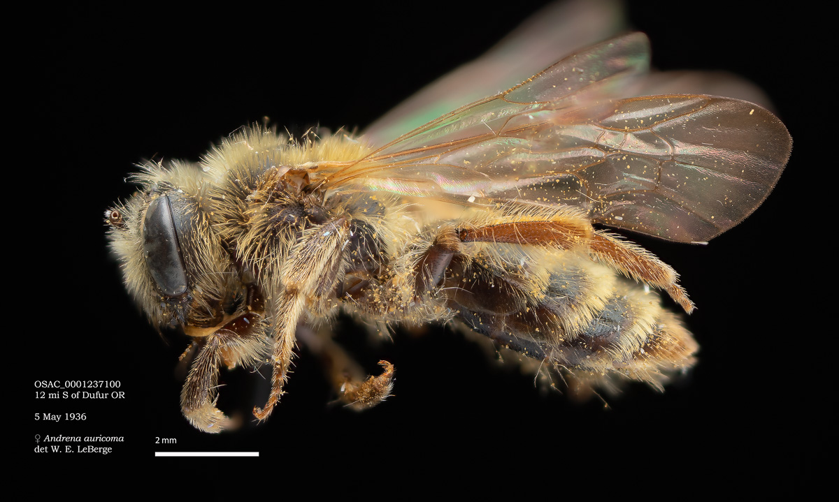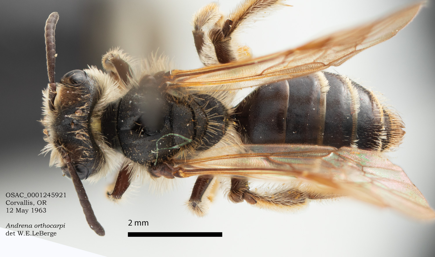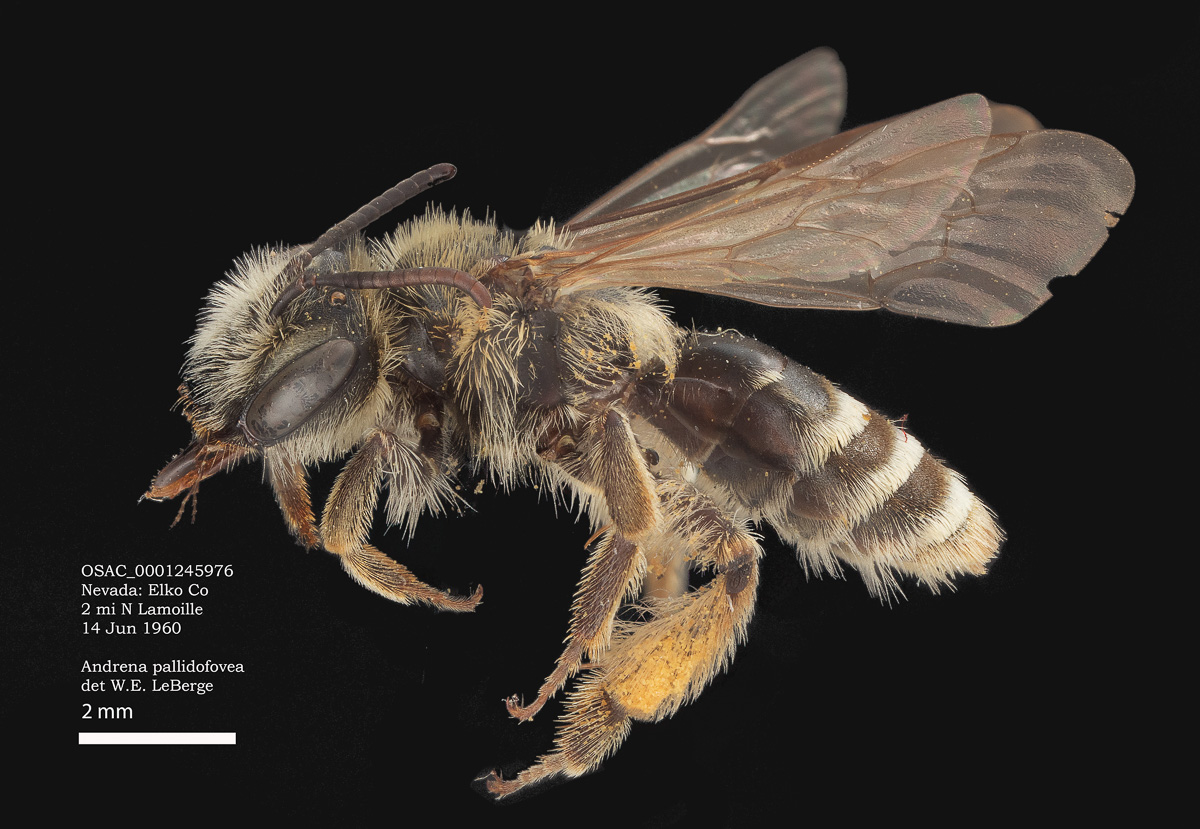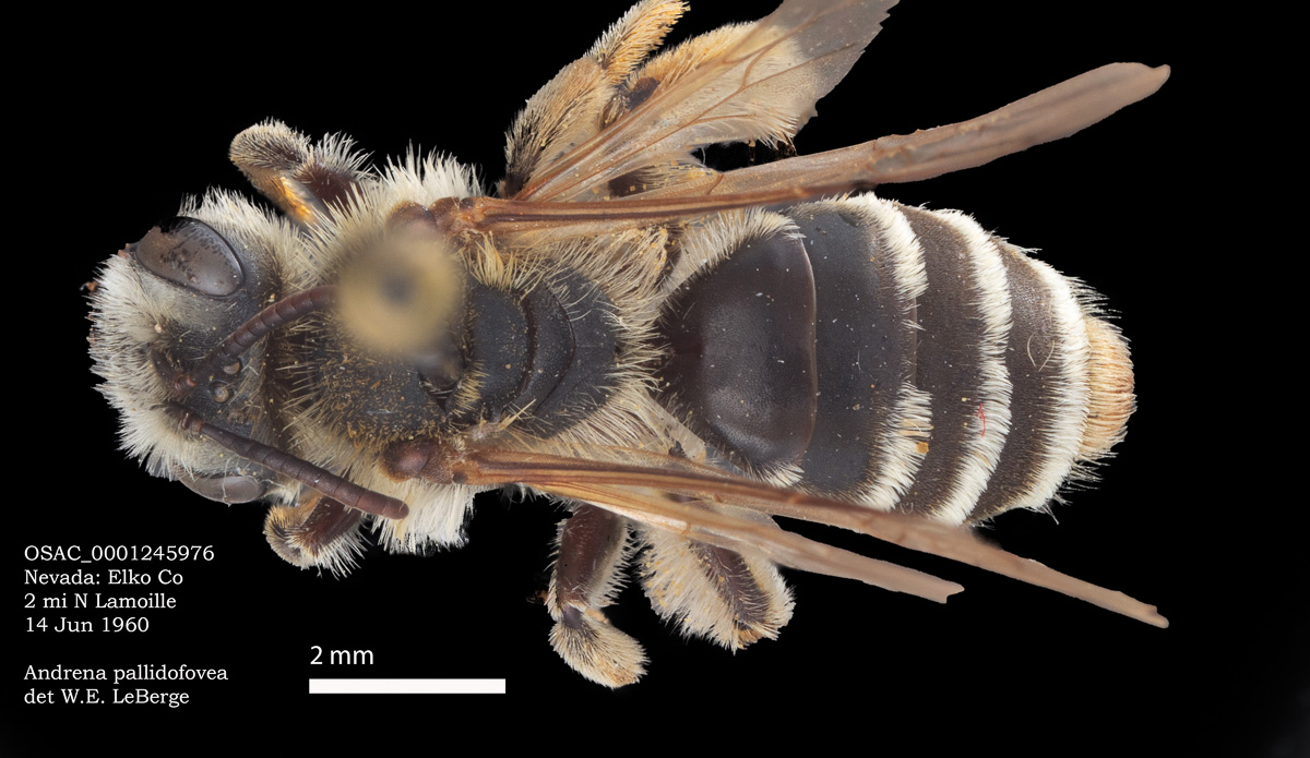OSAC specimen above, USGS specimen below. Evidently the same bee, both with light thoracic hairs.