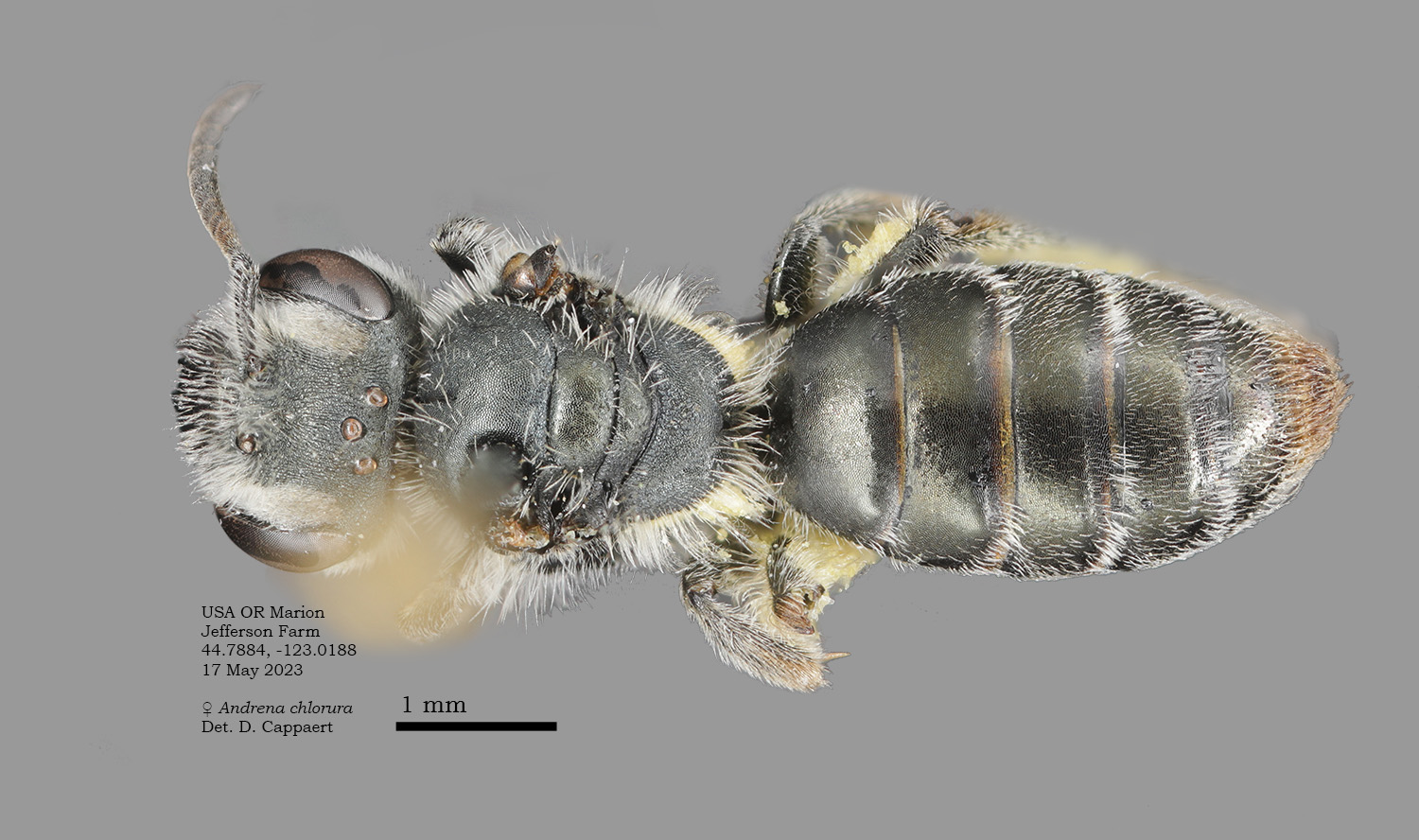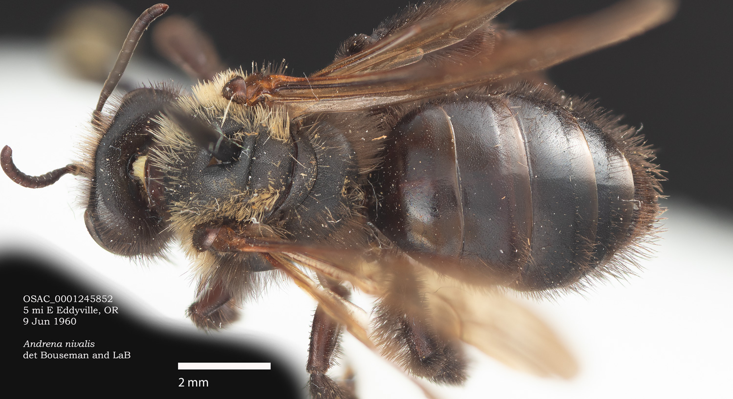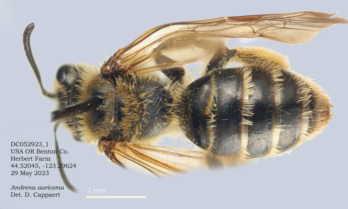 OSAC specimen above, USGS specimen below. Evidently the same bee, both with light thoracic hairs.