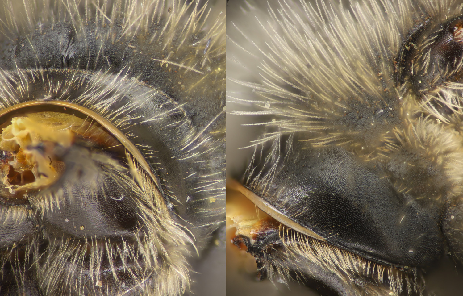 Two specimens that strike me as having the same vibe. Except: one with clypeal hairs sparse. One denser.