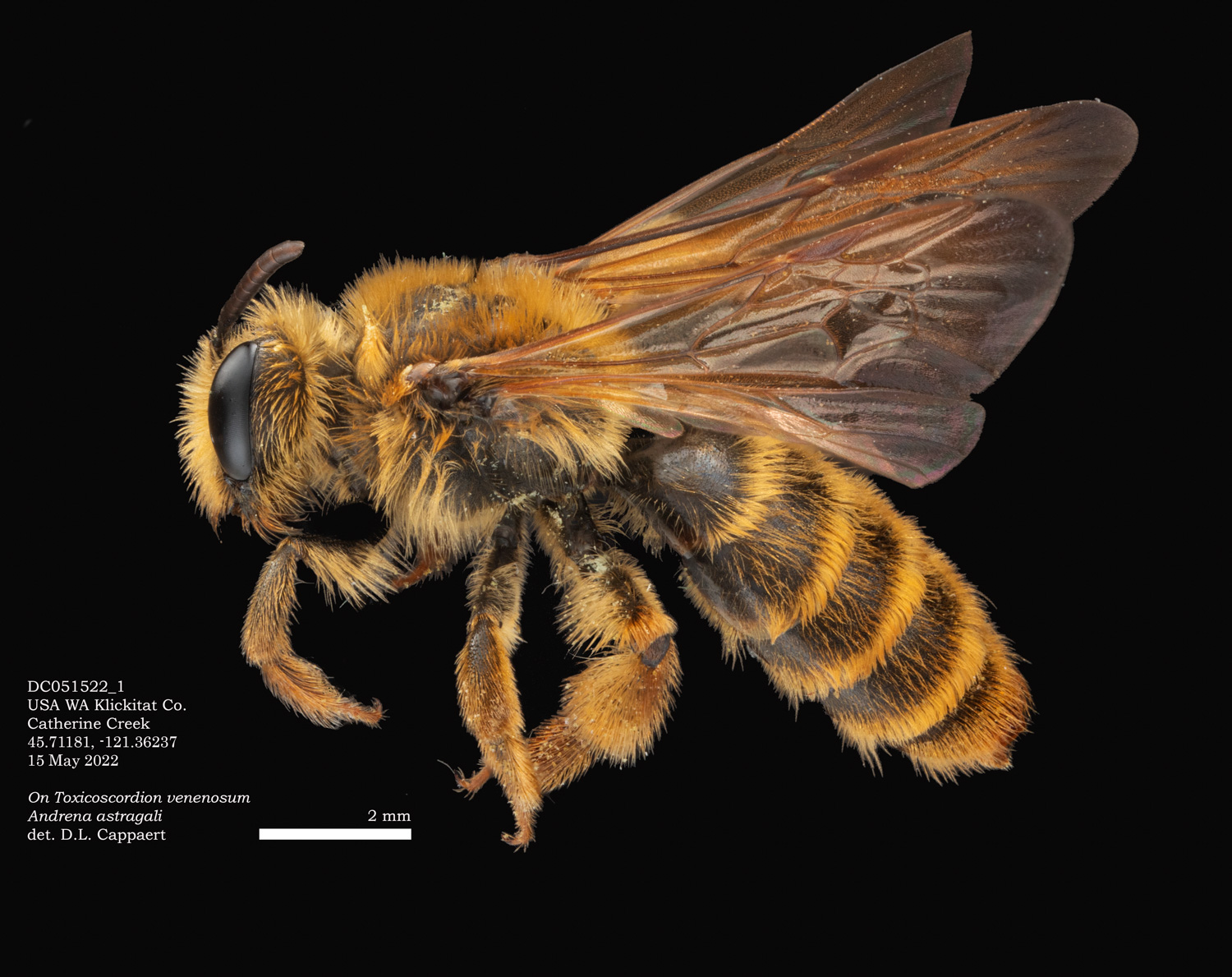Shortcut: Andrena astragali forages exclusively on death camas, which is visited by no other bee. Discoverlife species page and range map ![]() |