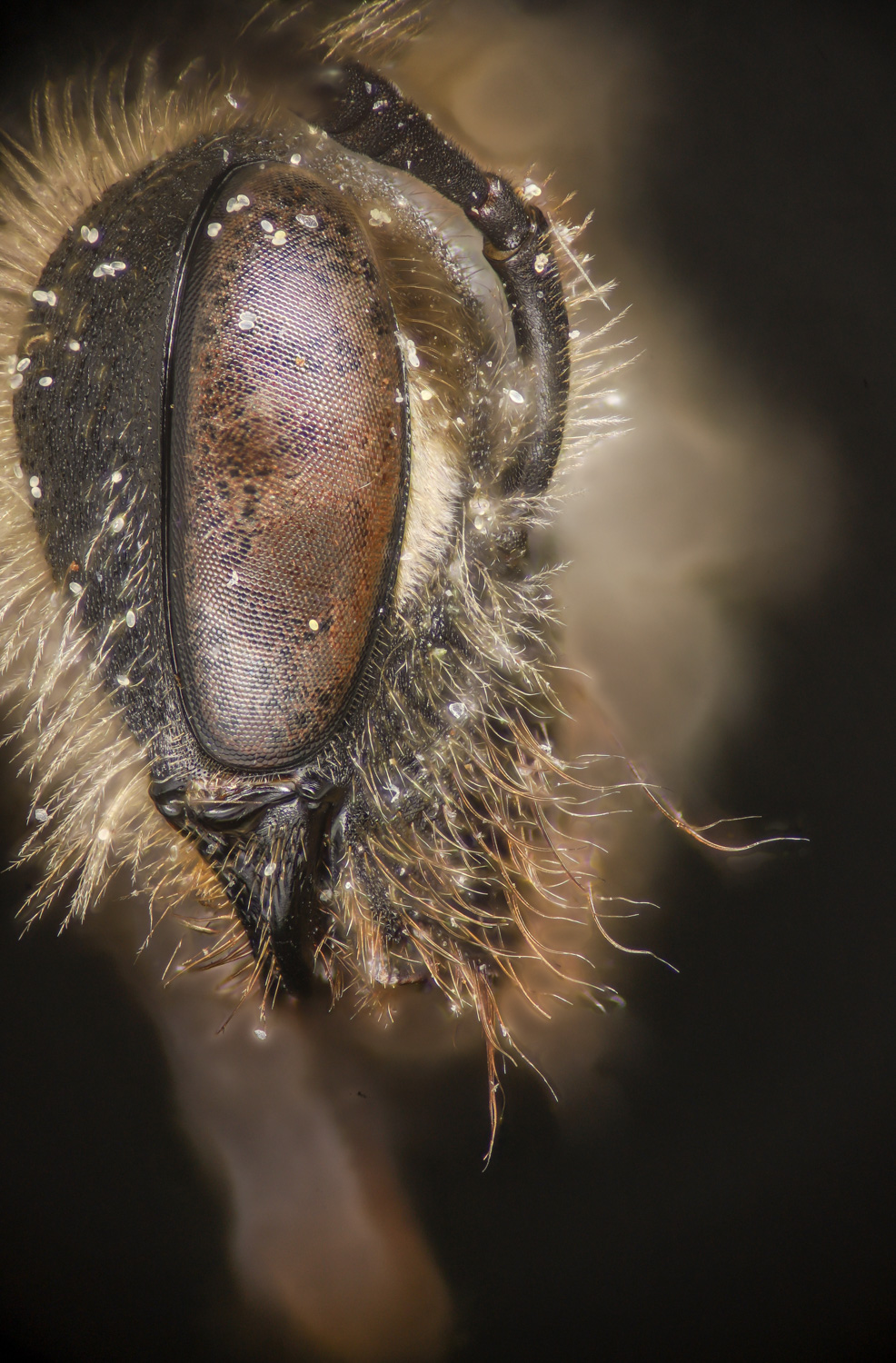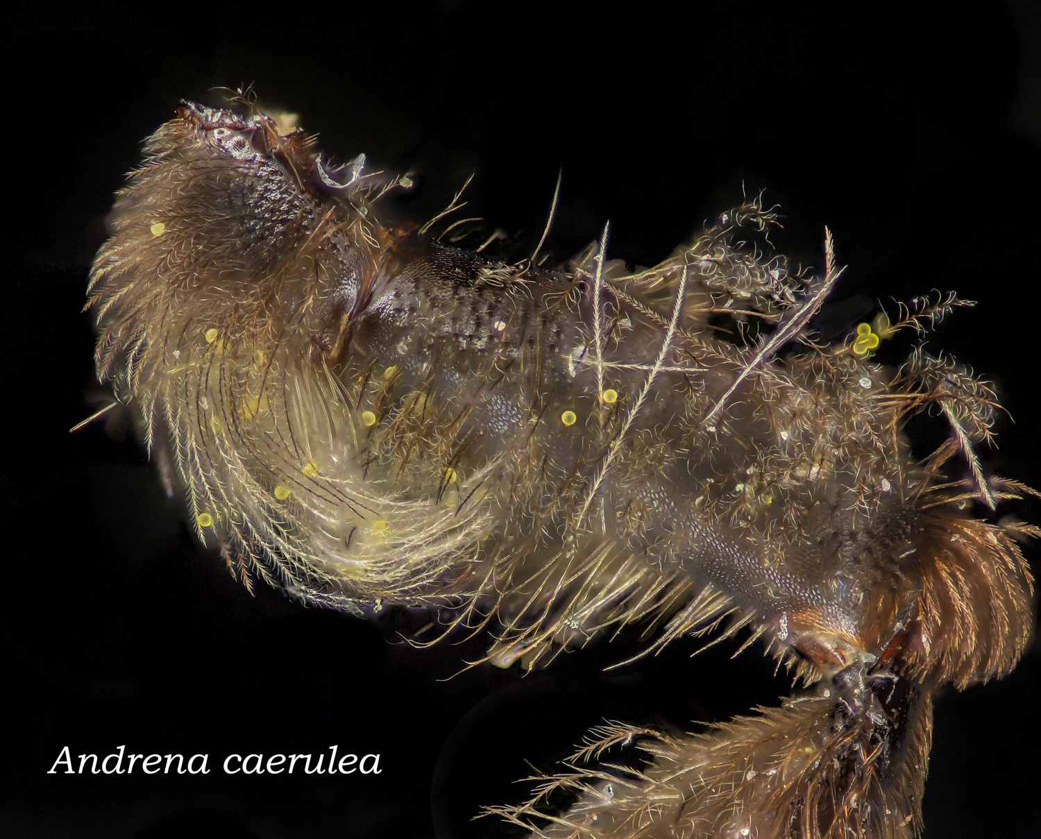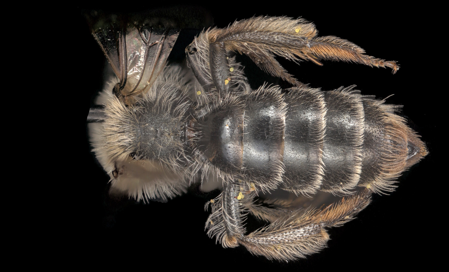 Above: Highly plumose tibial scopa, dark(ish) hairs.
