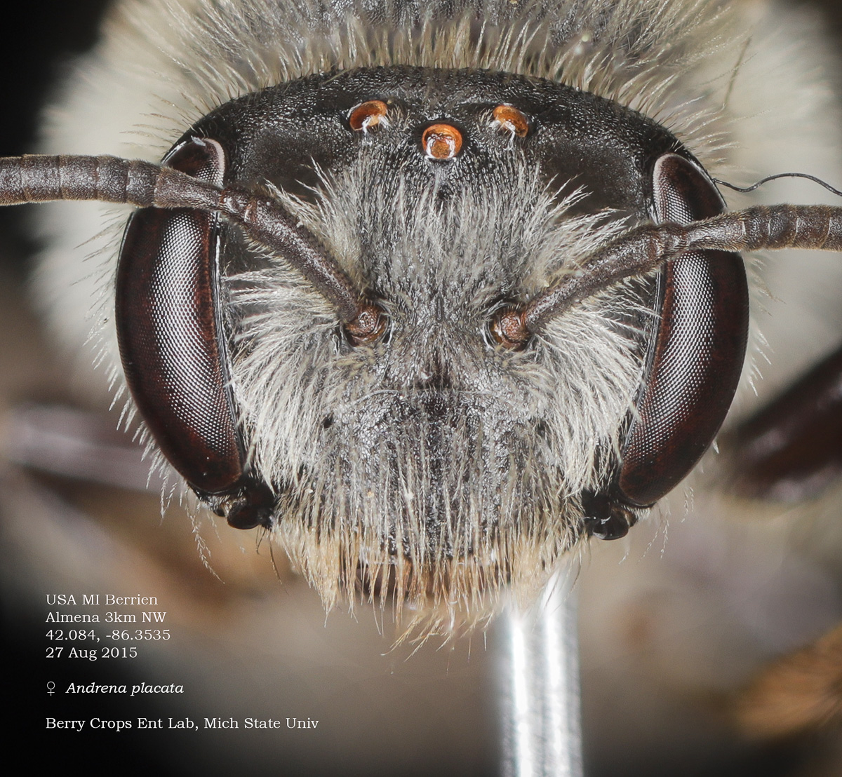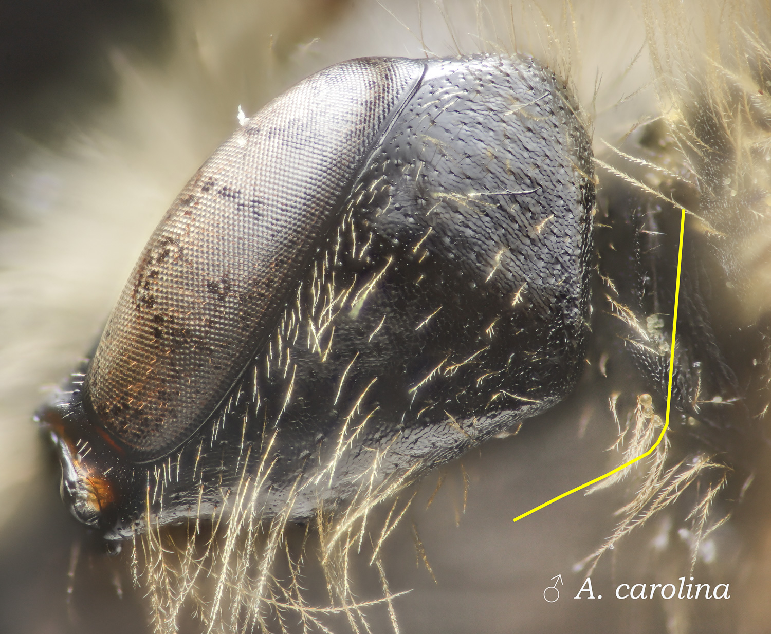 Below: Very short malar space. A. vicina would be short or moderate. |