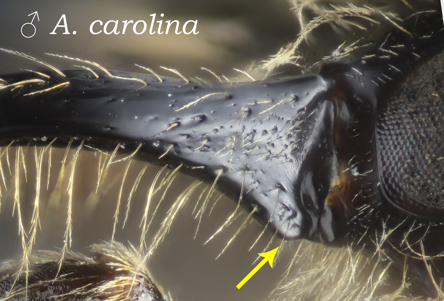 Fovea broader than antennal socket: excludes A. alleghaniensis. Also: alleghaniensis with short scutal hairs.