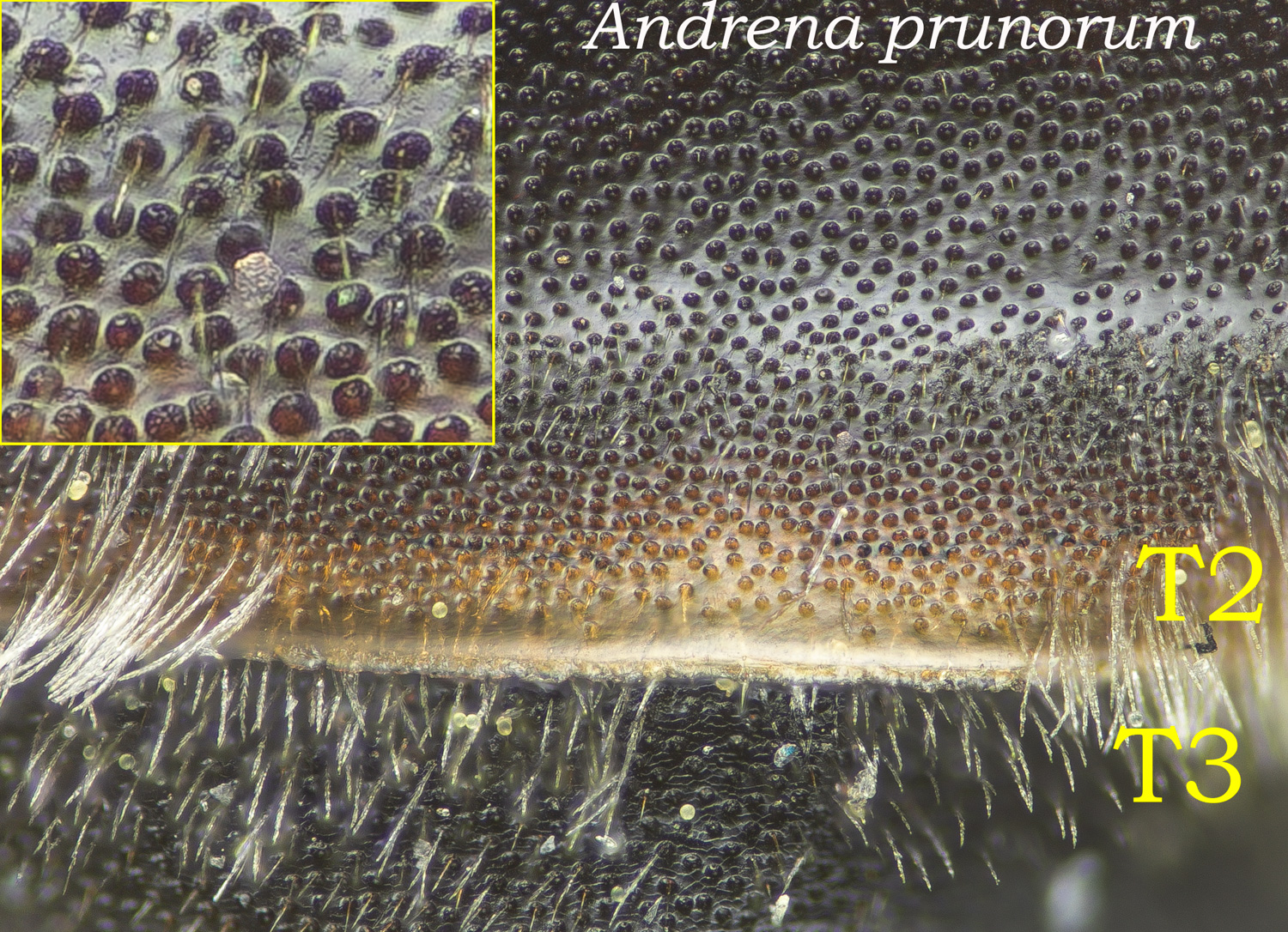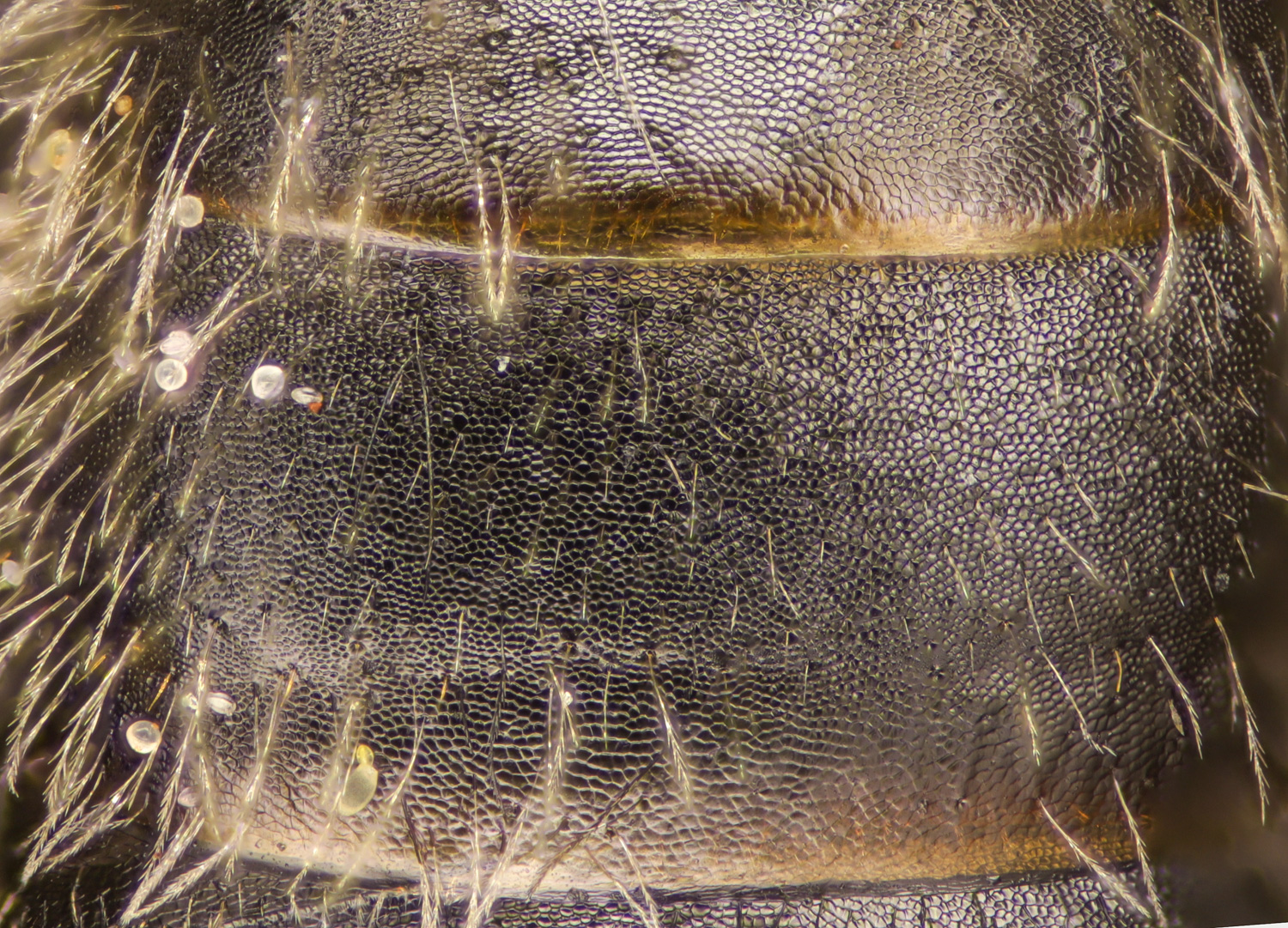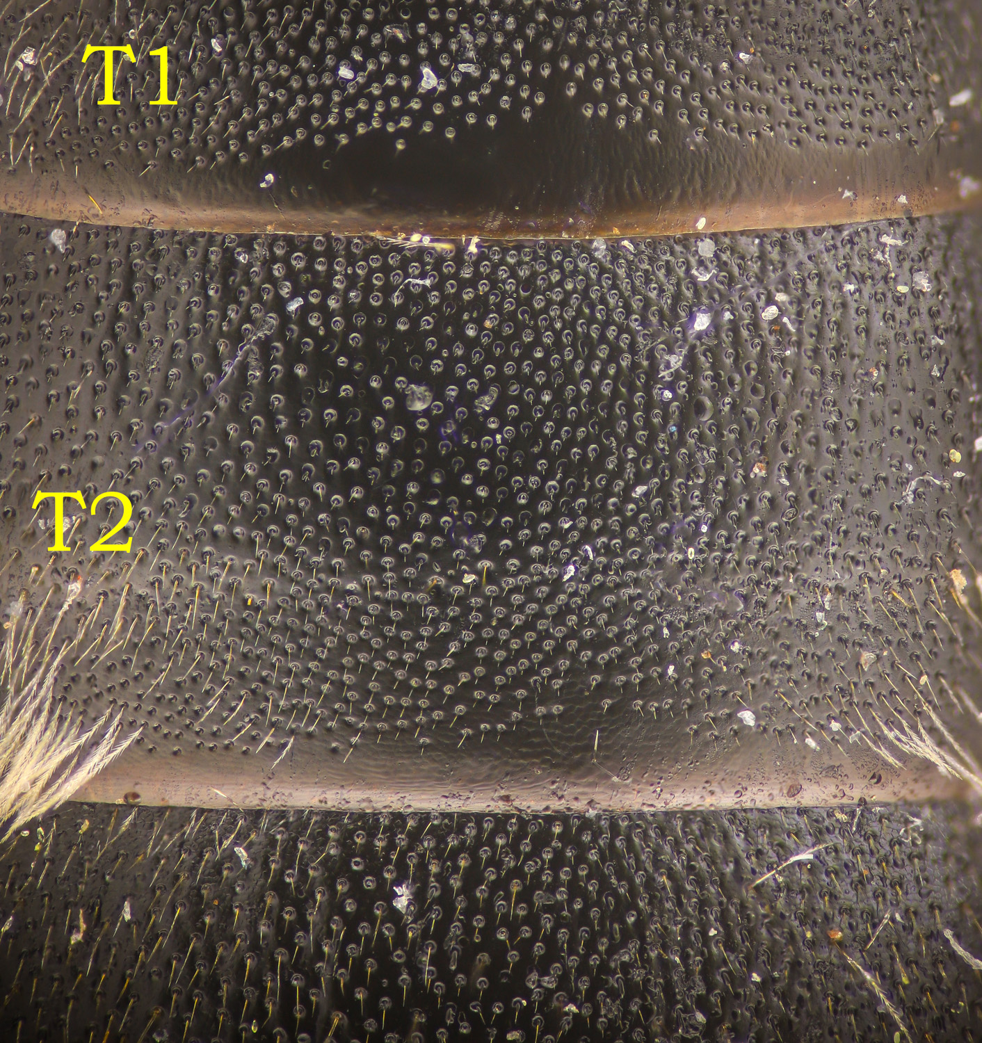 T2 minutely, densely punctate, shiny (?). T2-5 tergal hairs dark.