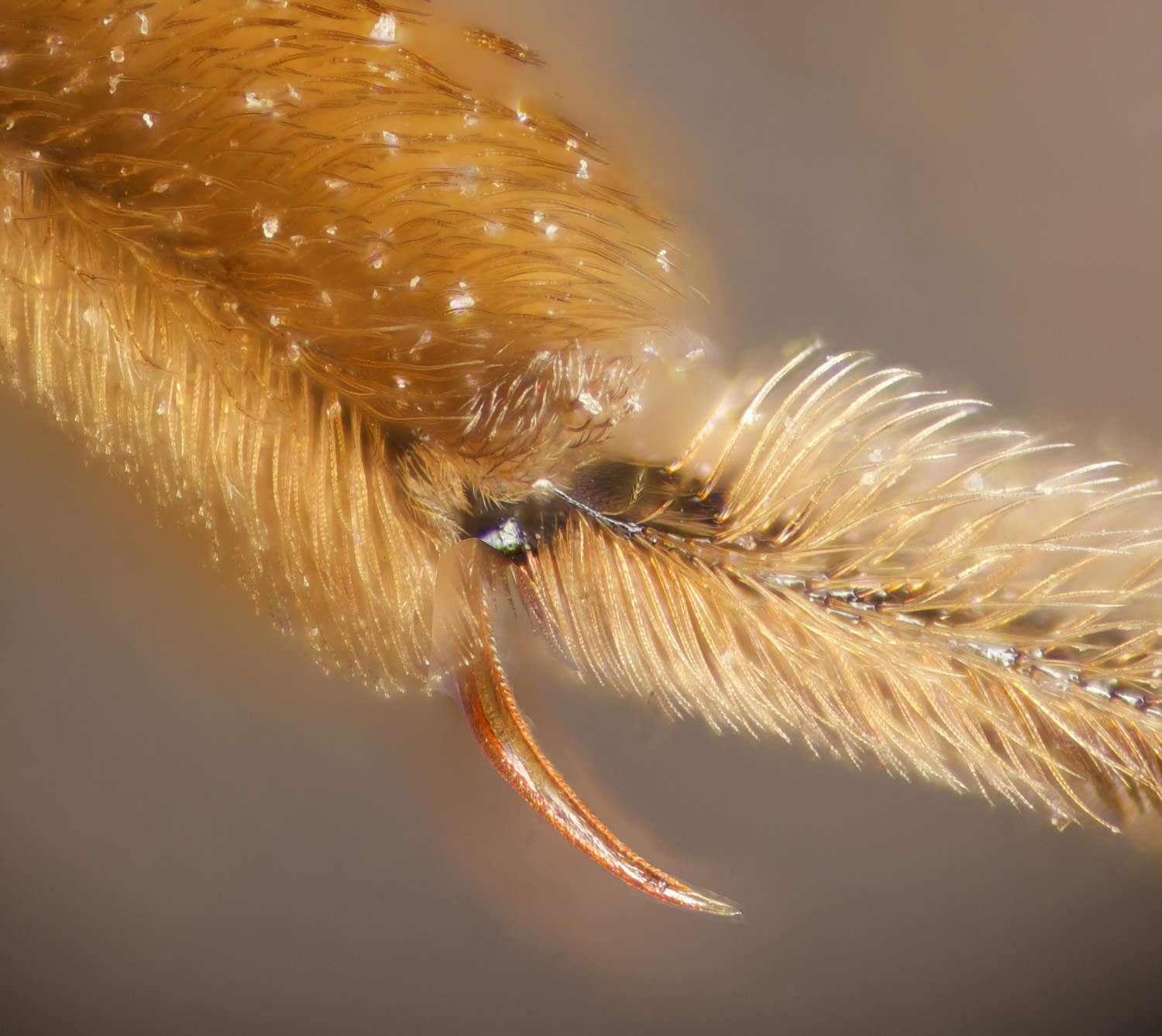 Above: trochanter with straighter hairs proximally.