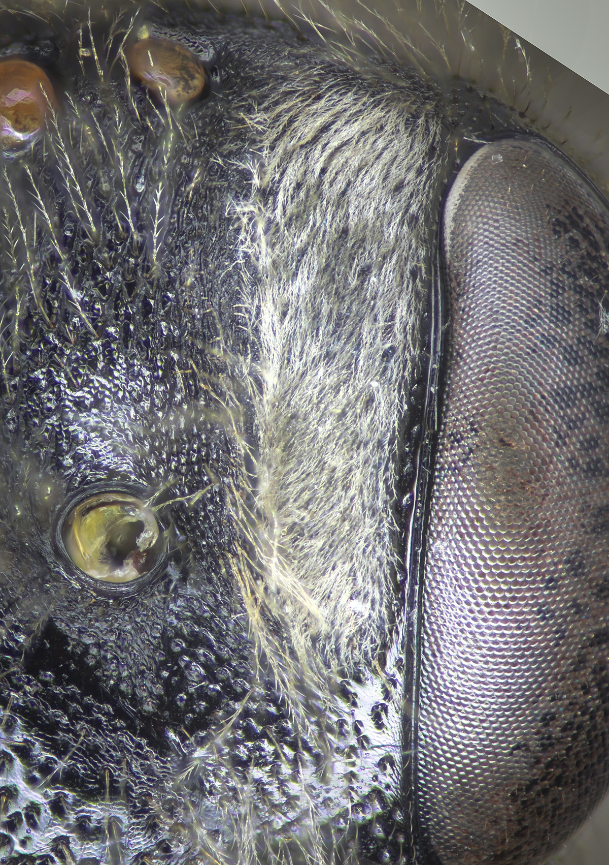White fovea, less than 1 ocd from ocellus. Short vertex.