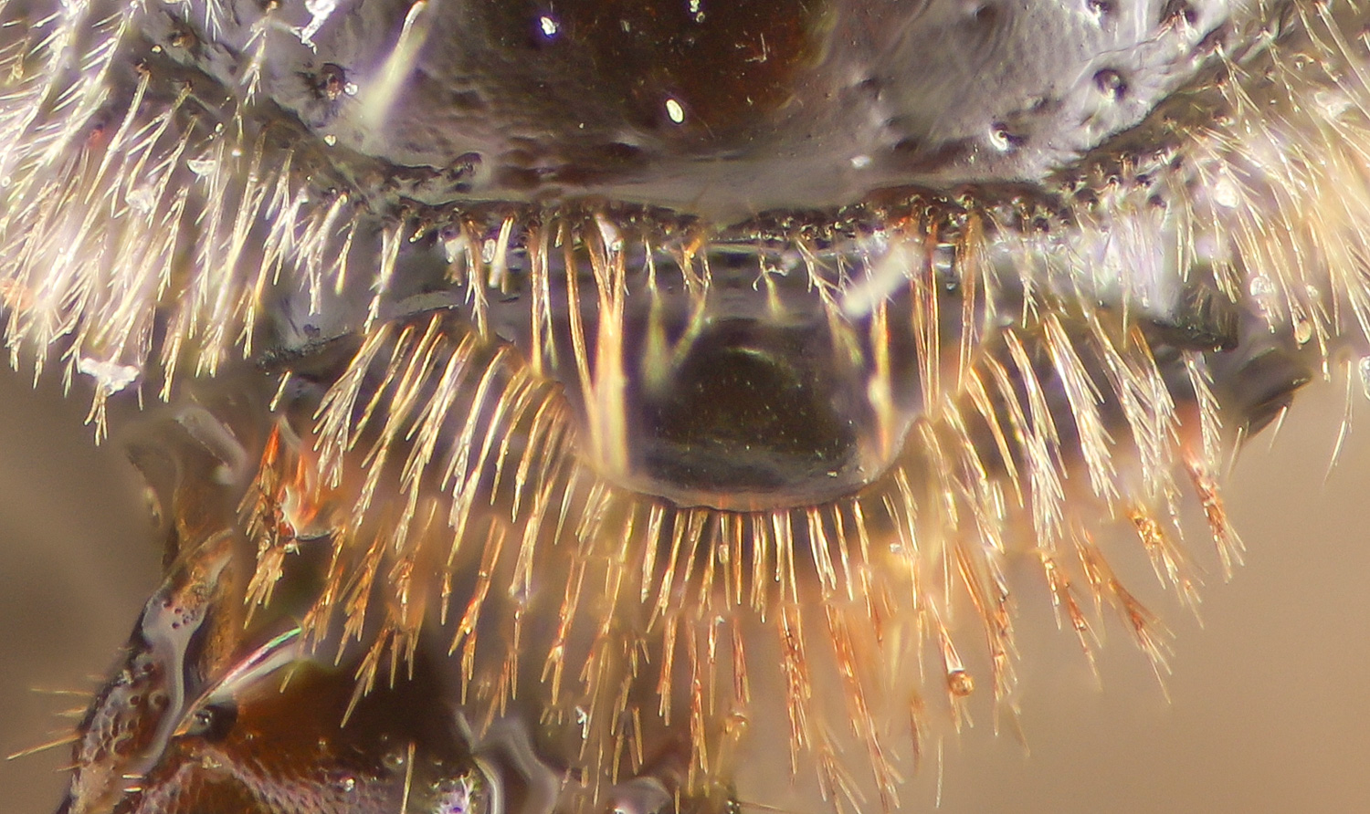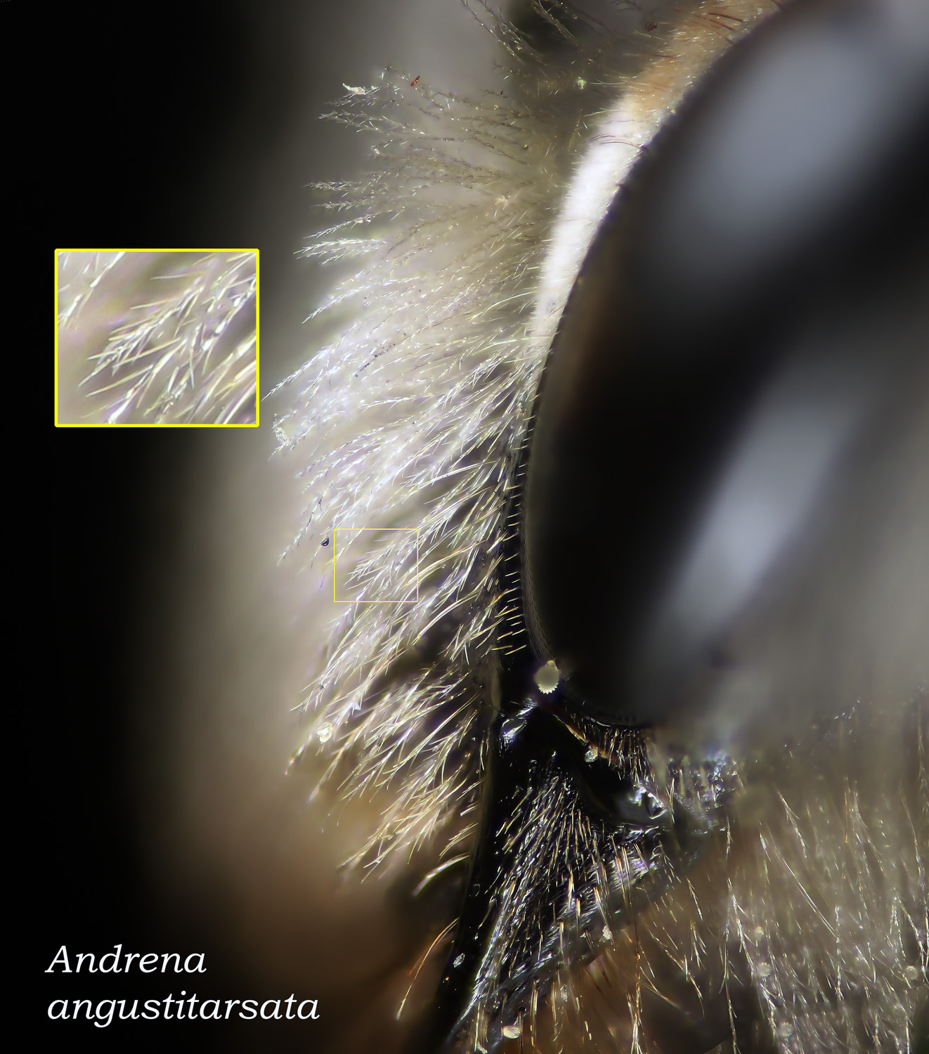 Below: Clypeal hairs plumose. |