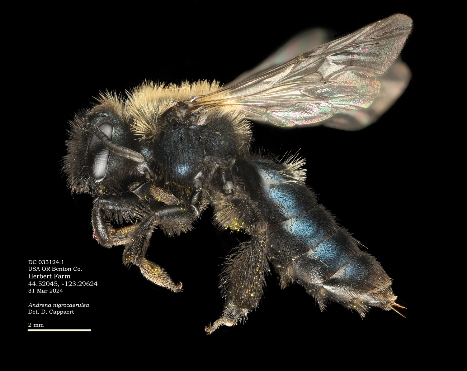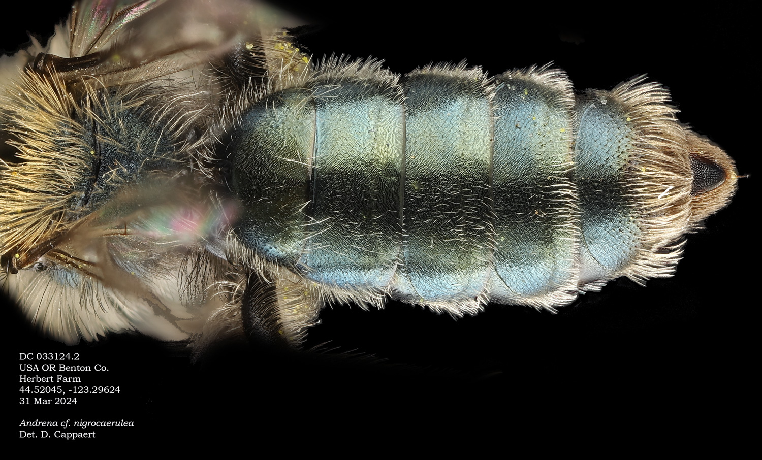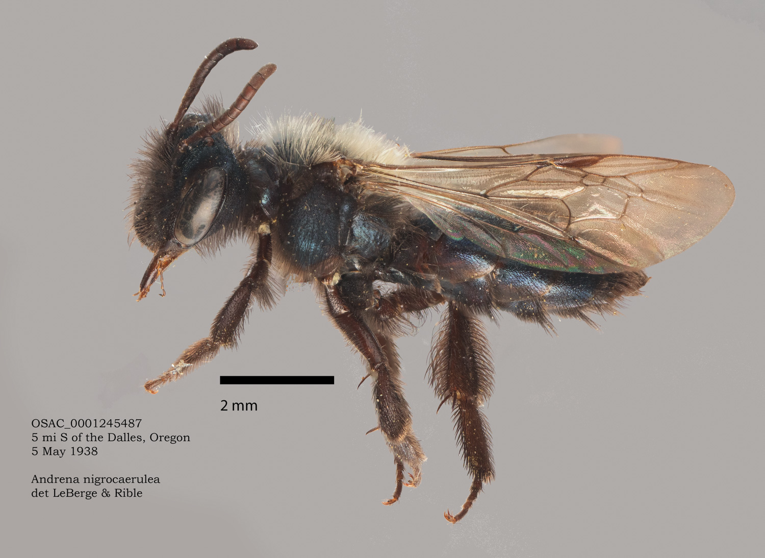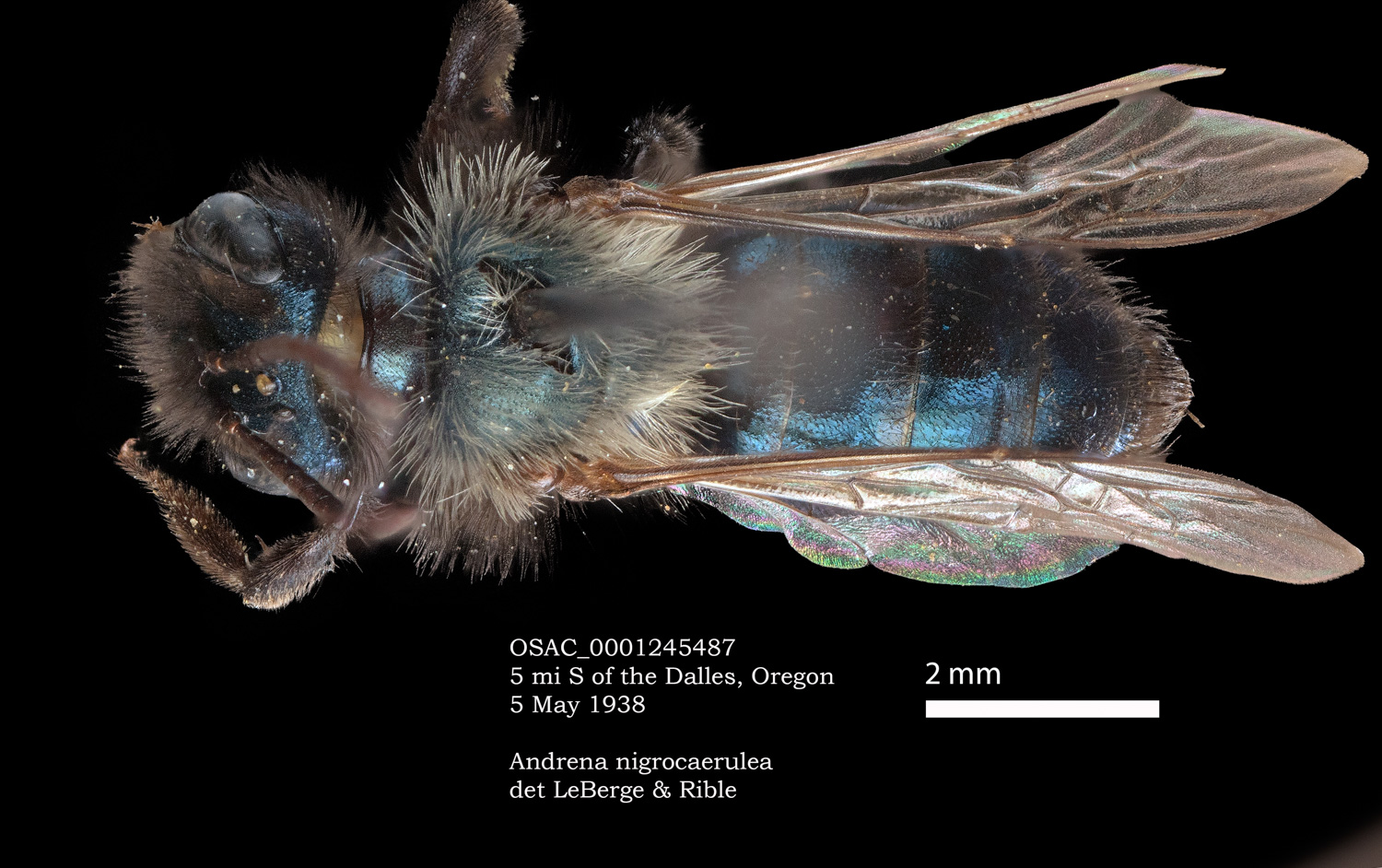| Images at right: A. nigrocaerulea specimen from Oregon State Arthropod Collection, determined by LaBerge/Ribble. |