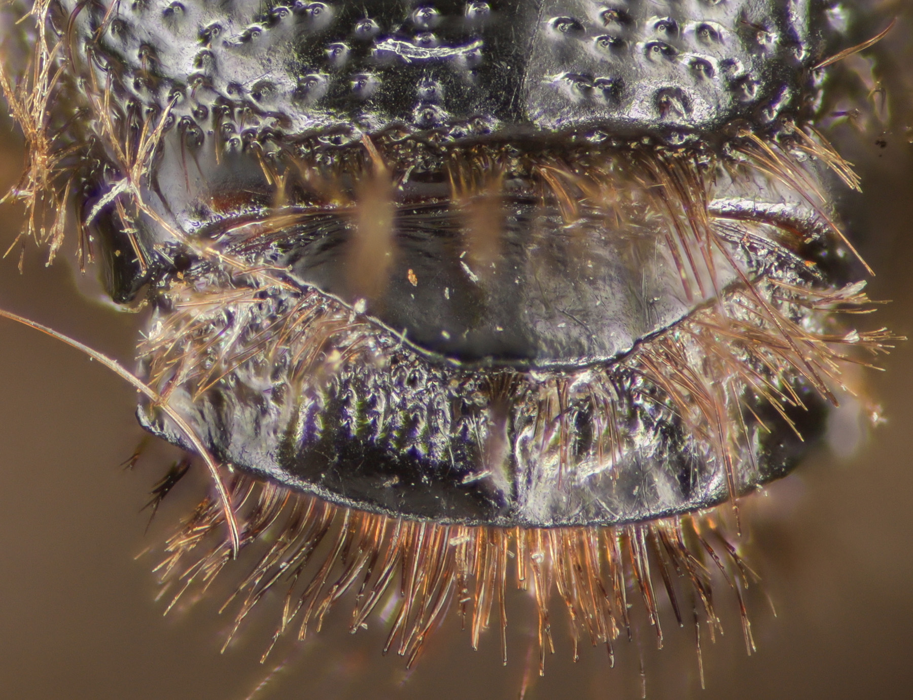 Notable: Tergae, scutum, head densely hairy.