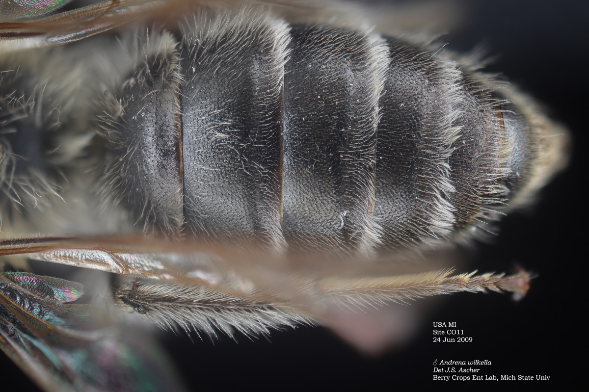 There is no path in DL that clearly excludes species other than A. wilkella. So I looked at the primary literature: A Revision of the Bees of the Genus Andrena of the Western Hemisphere. Part XIII. Subgenera Simandrena and Taeniandrena (LaBerge, 1989)