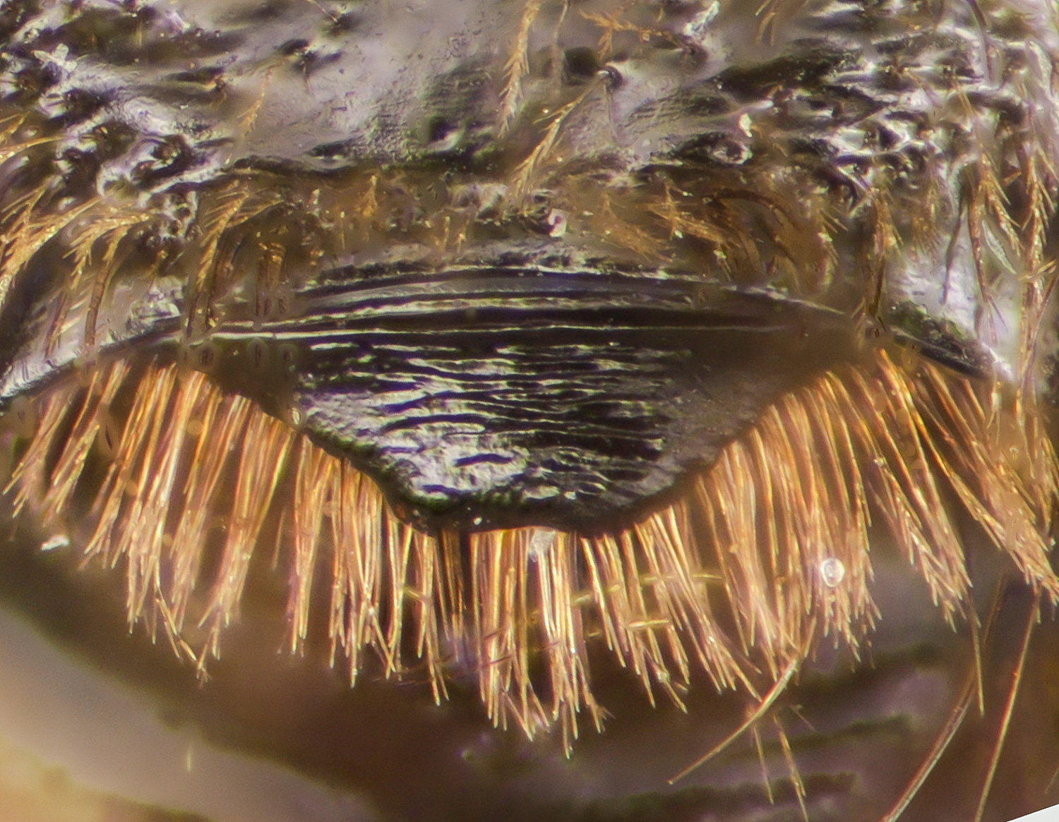 The pygidial plate is a sort of spatula with which bees prepare brood cells. DL differentiates two conditions, "with an internal plate or ridge," or "unmodified." Modified plates appear to take many forms, are no doubt useful ID clues, beyond DL.