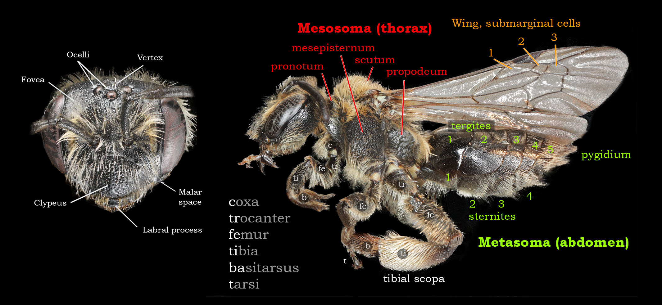11) Corbicula: Pollen carrying area lateral to the propodeum. |