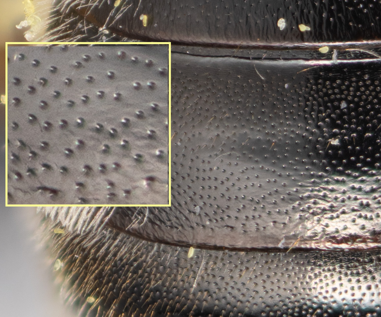 Pits 1-3 widths apart. Shows minimal shiny area posteriorally (left).