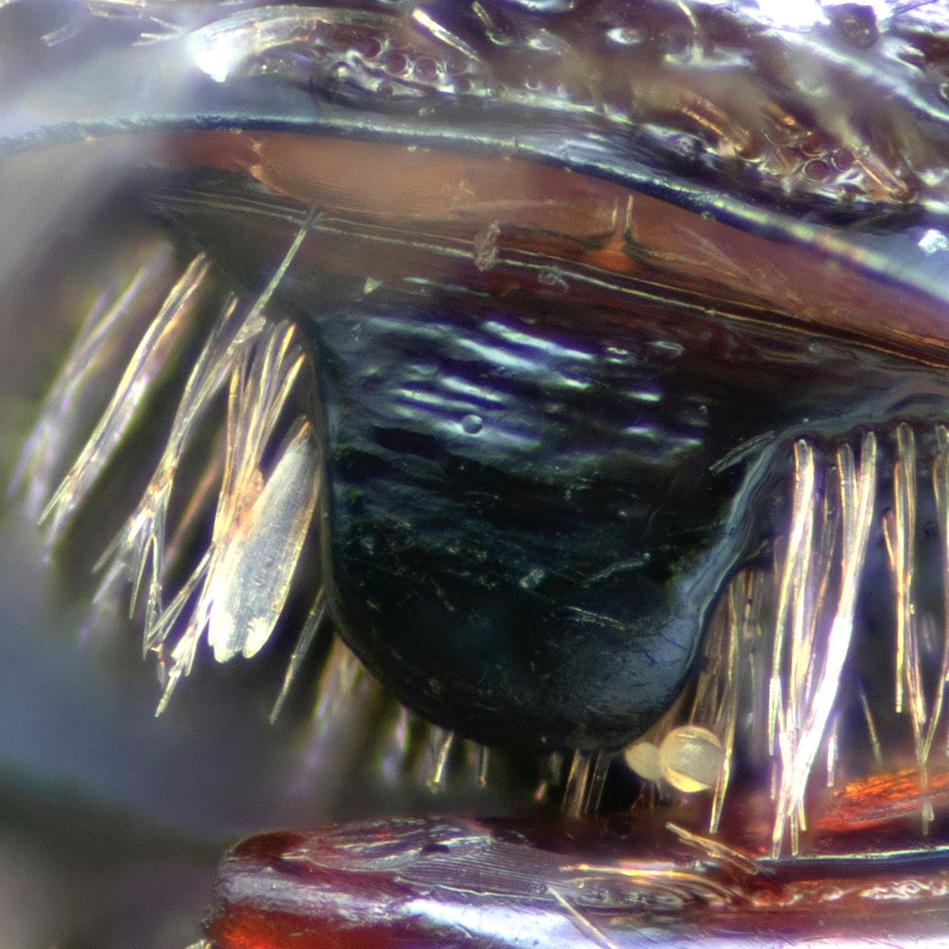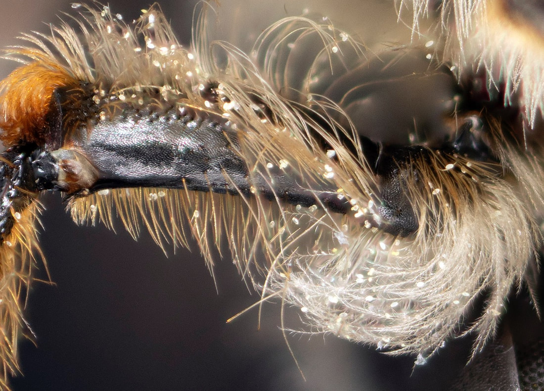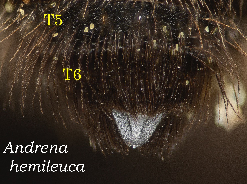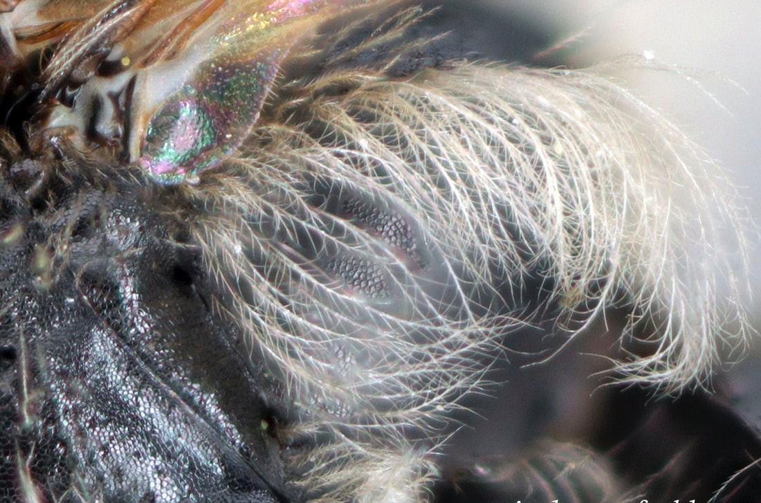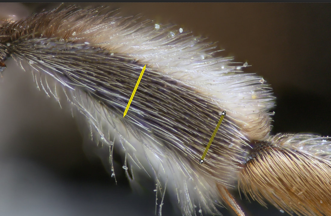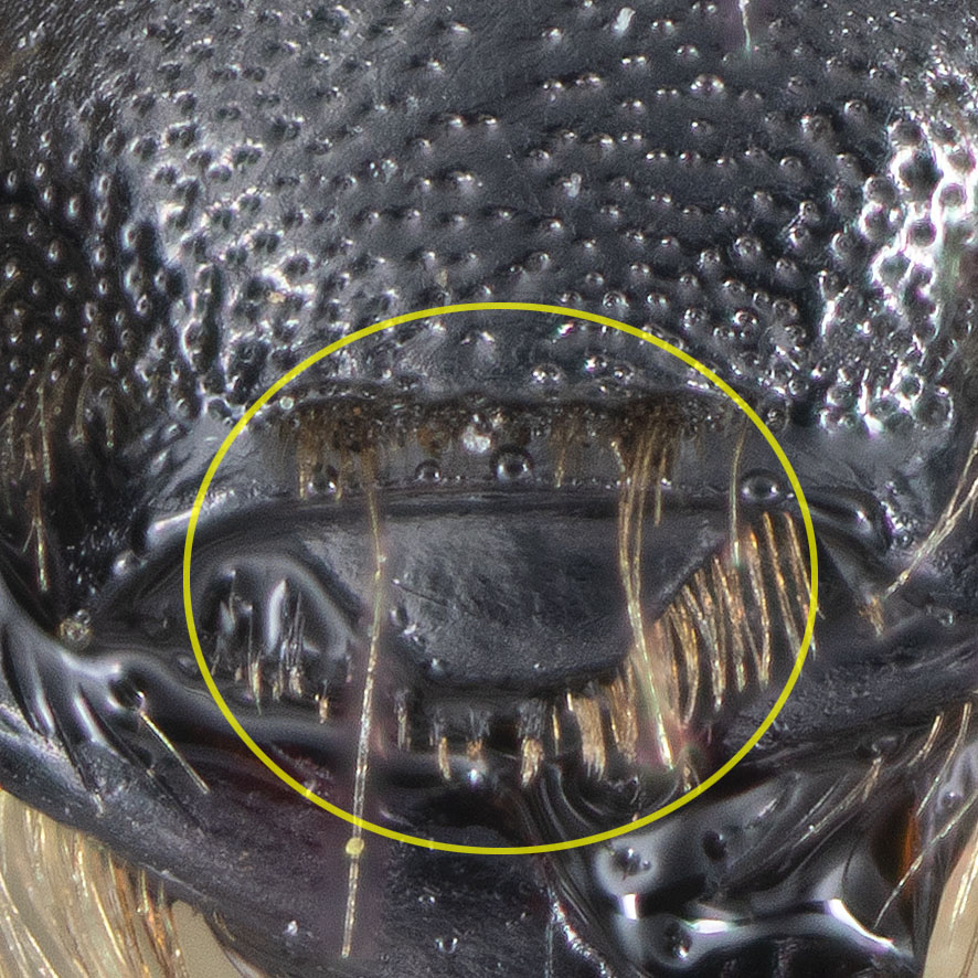 This set of pages is intended as a companion to the DiscoverLife key to Andrena females. The DL key is not for the faint of heart; it contains 100 trait descriptors, and 521 taxa, likely close to the US total. Though daunting, DL is intended for the non-specialist, people that don't have large collections or fluency in the technical language of taxonomists. The key is mainly in plain English. It offers figures and images to explain characters. It is interactive - a user can winnow down the list of possible matches using only characters they can interpret with some confidence. However: A new user will struggle, until they have spent a hundred hours thinking hard about the characters, looking up the occasional difficult term, and getting it wrong too many times. At least, that has been my experience. What the key - any key - needs is really clear photos that show what a trait condition looks like under a scope. I've been adding these to the DL key, and I repurpose them here, so that I can show them at hi-res [click images to enlarge], and with explanatory comment. |