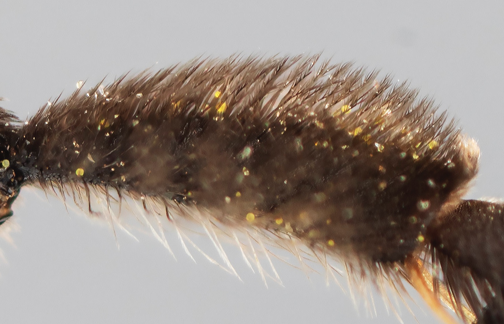 An incomplete corbicula, lacking an anterior fringe. Typically these will also have internal hairs.