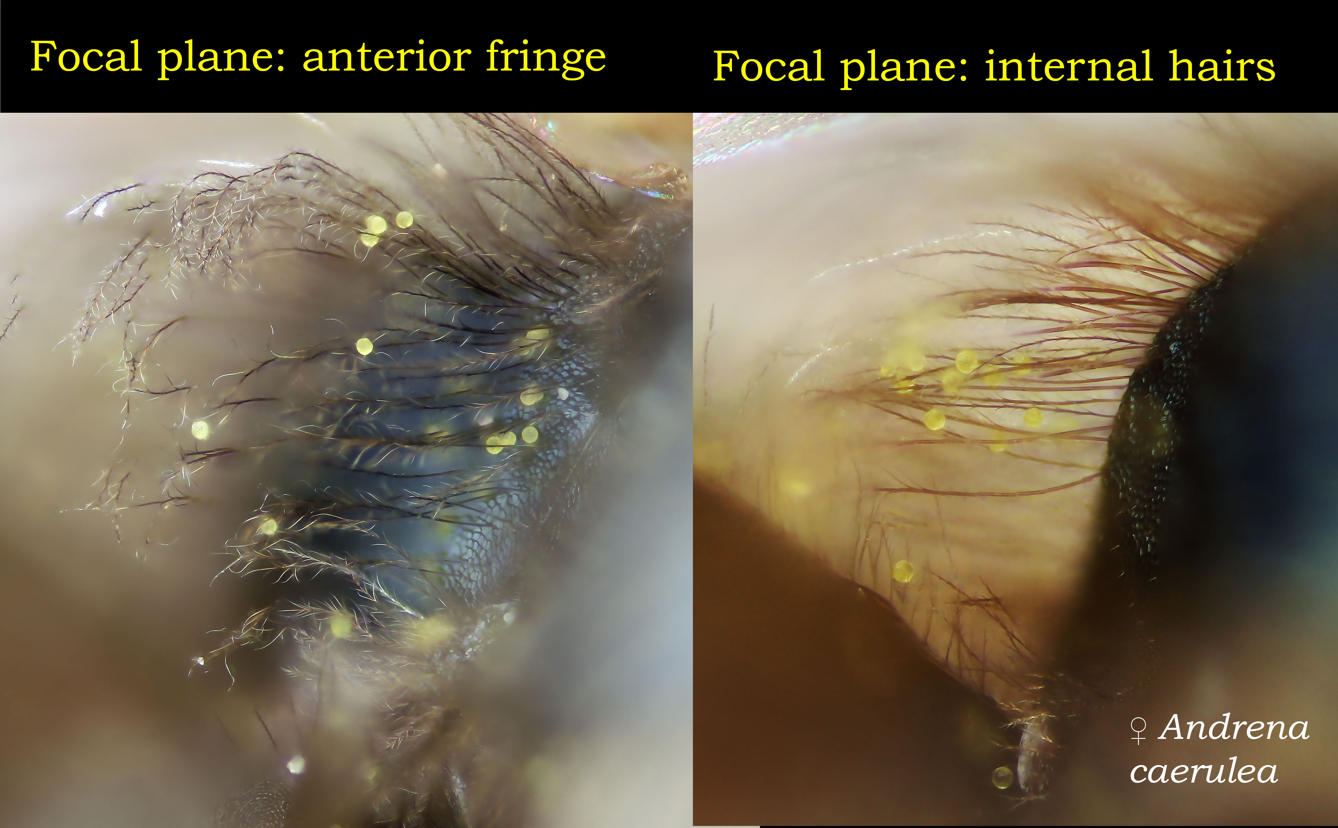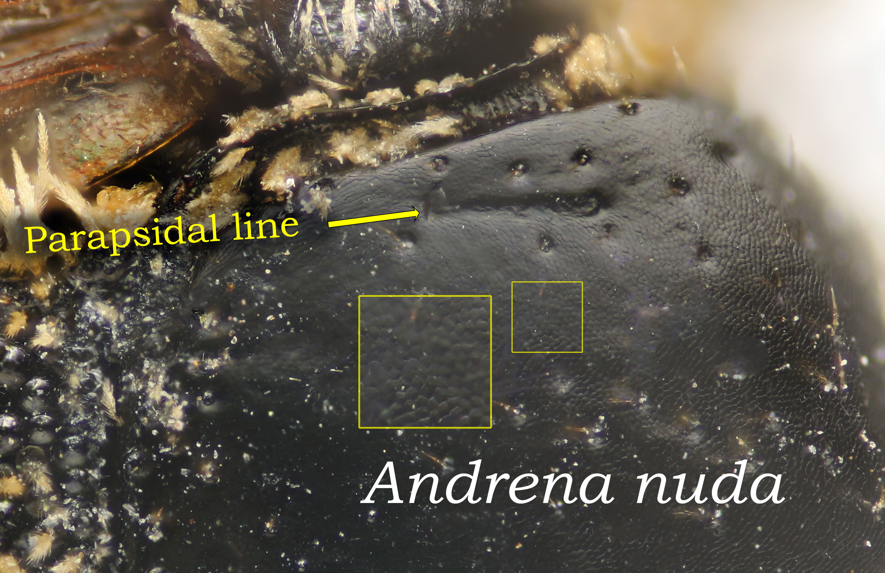 Super important as characters for female Andrena. Tricky to assess for degraded specimens, where facial hairs obscure the fovea, or in poor light. Move the light, move the specimen, trim the hairs. If the fovea are hairless ... perhaps you have a Panurginus.