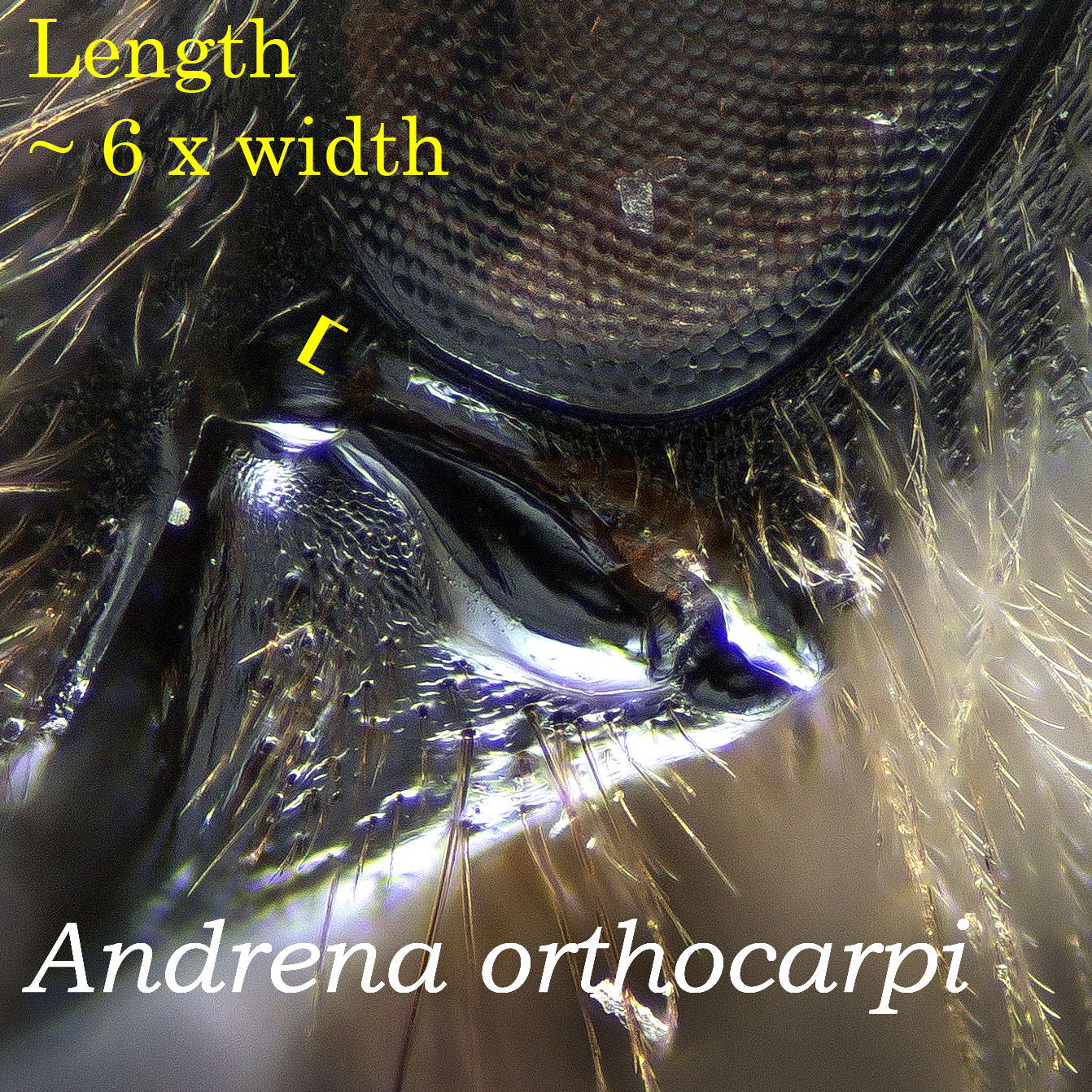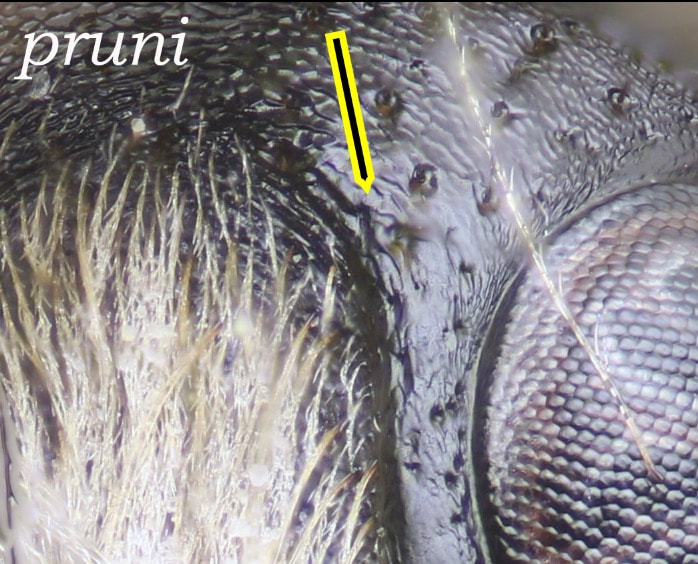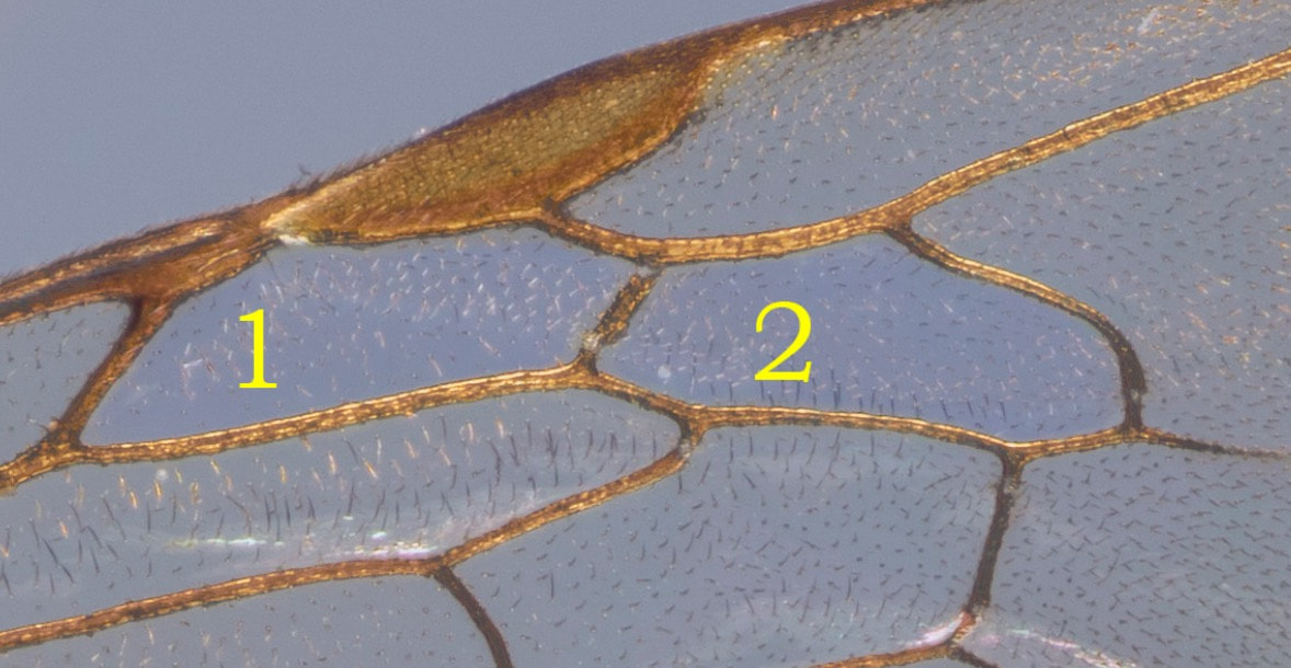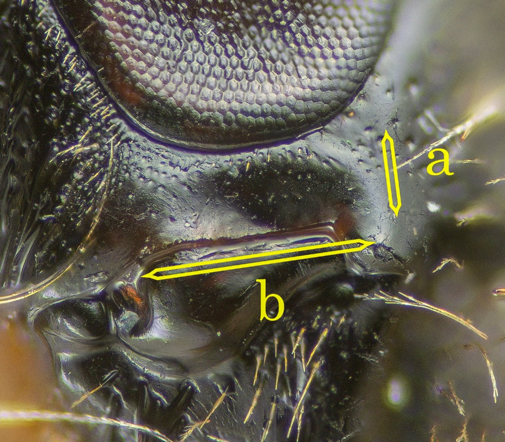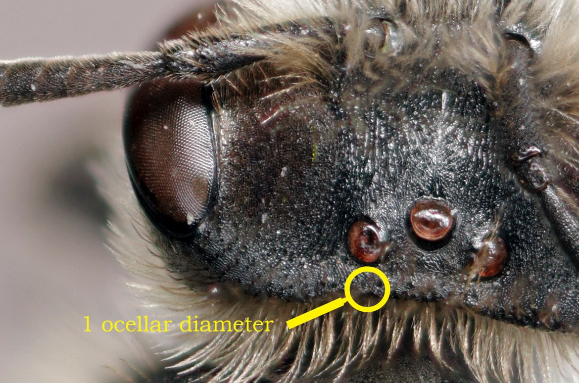 Vertex height (or length) is the distance between a lateral ocellus and the posterior edge of the head. The good thing about this character is that it is always visible, though it is difficult to gauge accurately, even with a reticle.