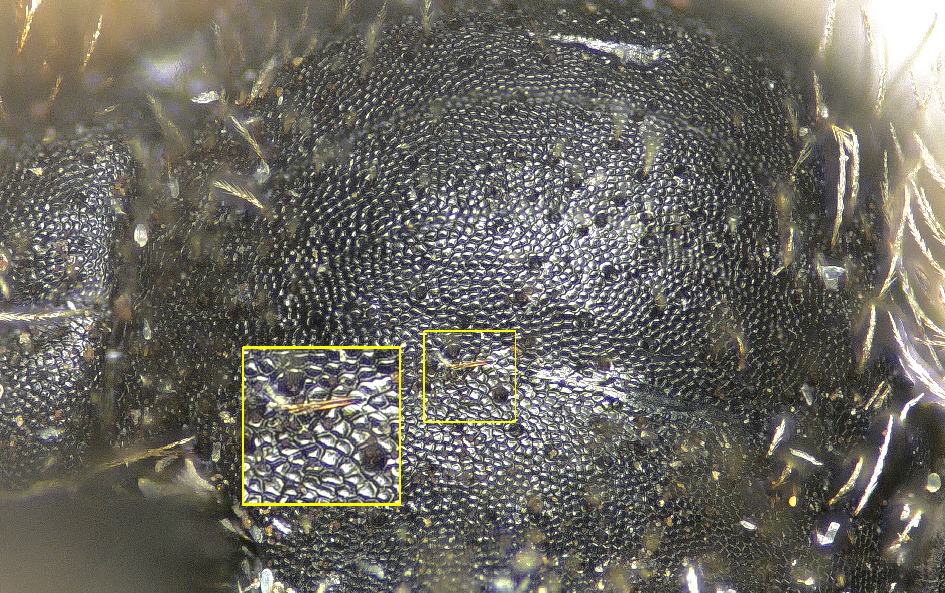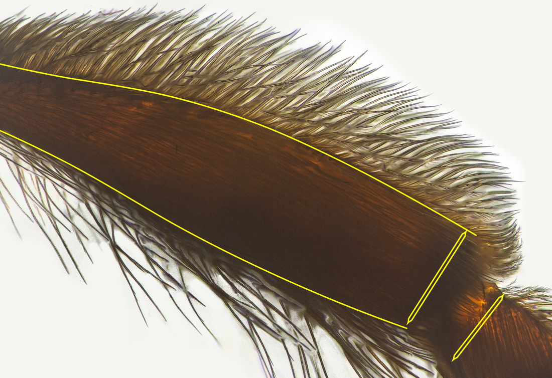 Tricky, because hairs tend to obscure the actual edges of the underlying integument. Best to view with back-light.